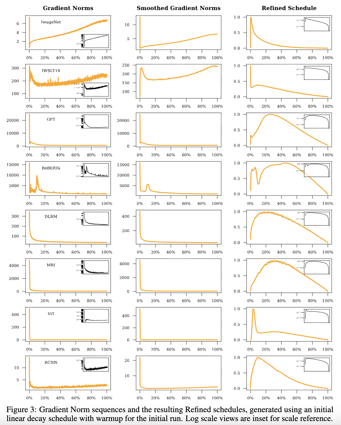 论文提供了一些Refined学习率的例子,大多数都呈现出“Warmup-Decay”的形式,特别地,大部份实验中后期的梯度模长都近乎常数,所以中后期的最优Decay形状都接近线性衰减: