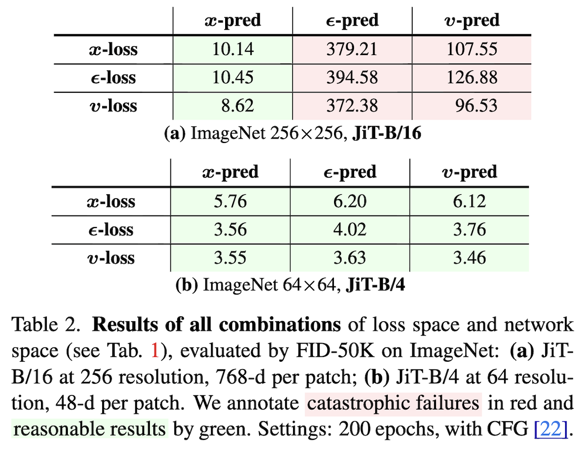 当然,虽然看上去很合理,但到目前为止它顶多算是猜测,接下来就是通过实验来验证它。JiT里边的实验很多,但笔者认为最值得关注的是下面三个。