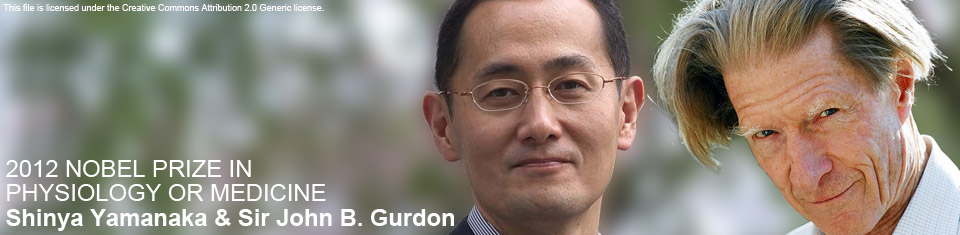 京都大学物质-细胞统合系统据点iPS细胞研究中心主任长山中伸弥(Shinya Yamanaka)、英国发育生物学家约翰-戈登因(John B. Gurdon)。