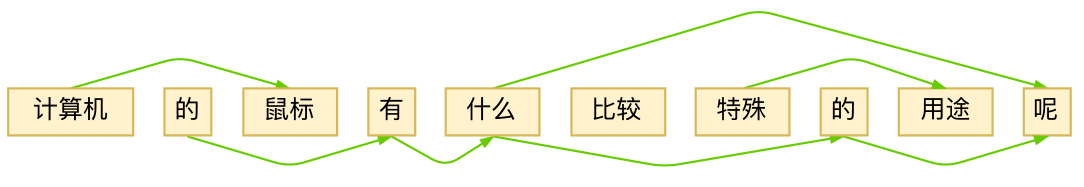 因为考虑了Skip Gram模型,因此我们可以把句子内比较“紧凑”(互信息比较大)的“词对”连接起来,用图论的角度看,这就构成了一个“有向无环图”: