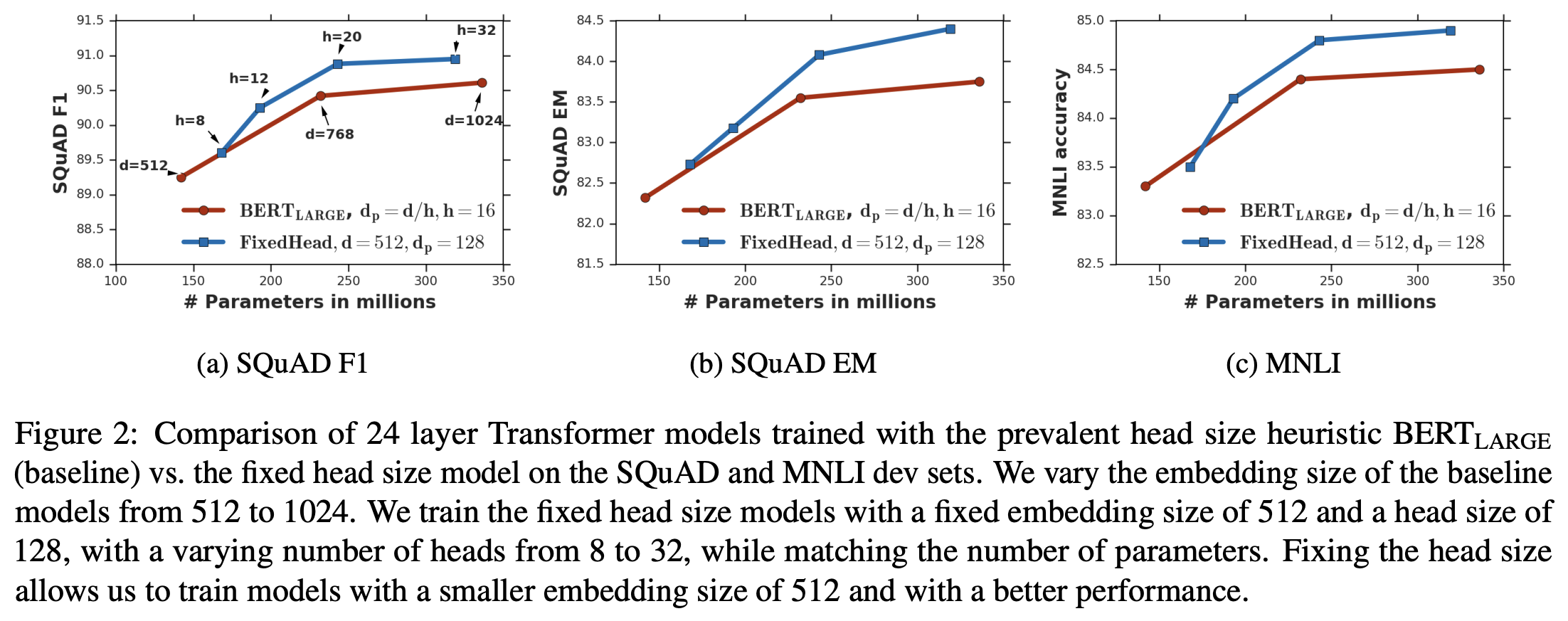 第一个结果来自文章《Low-Rank Bottleneck in Multi-head Attention Models》,它明确地指出了Multi-Head Attention里边的表达能力瓶颈,并提出通过增大key_size的方法来缓解这个瓶颈。