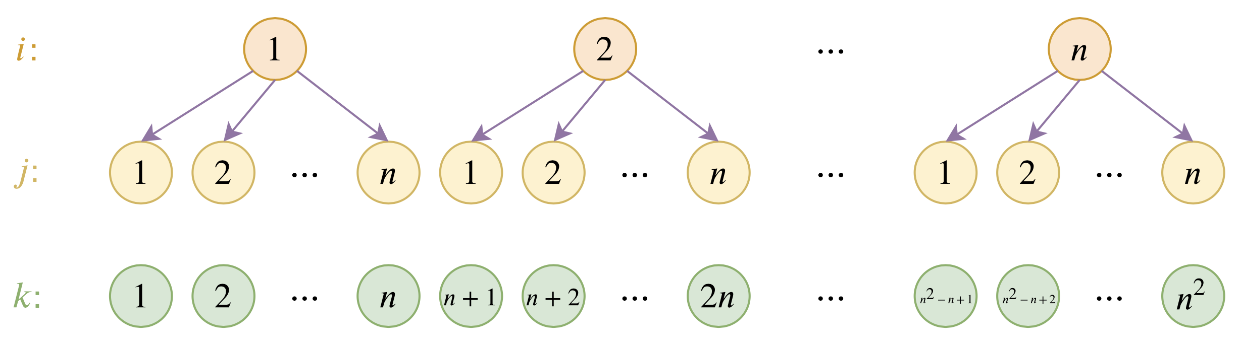 这样一来,我们的参数还是$\boldsymbol{p}_1,\boldsymbol{p}_2,\cdots,\boldsymbol{p}_n$,但我们可以表示出$n^2$个位置的编码,并且前$n$个位置编码跟原来模型是相容的。