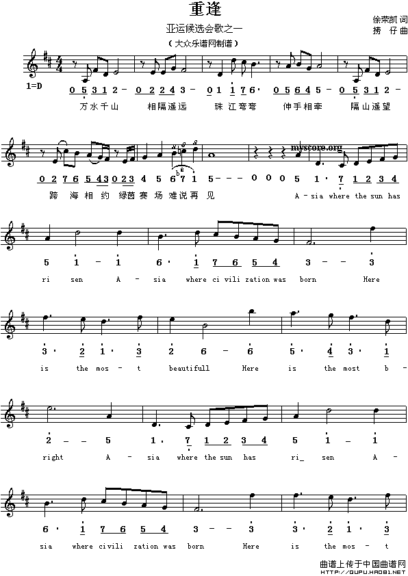 By 苏剑林 | 2010-08-05 | 25277位读者 |历时三年,经过三届评选,《日出东方》、《重逢》和《最美的风采》入围亚运会会歌候选歌曲。就BoJone而言,比较喜欢的事《日出东方》。最终结果如何?让我们拭目以待!
