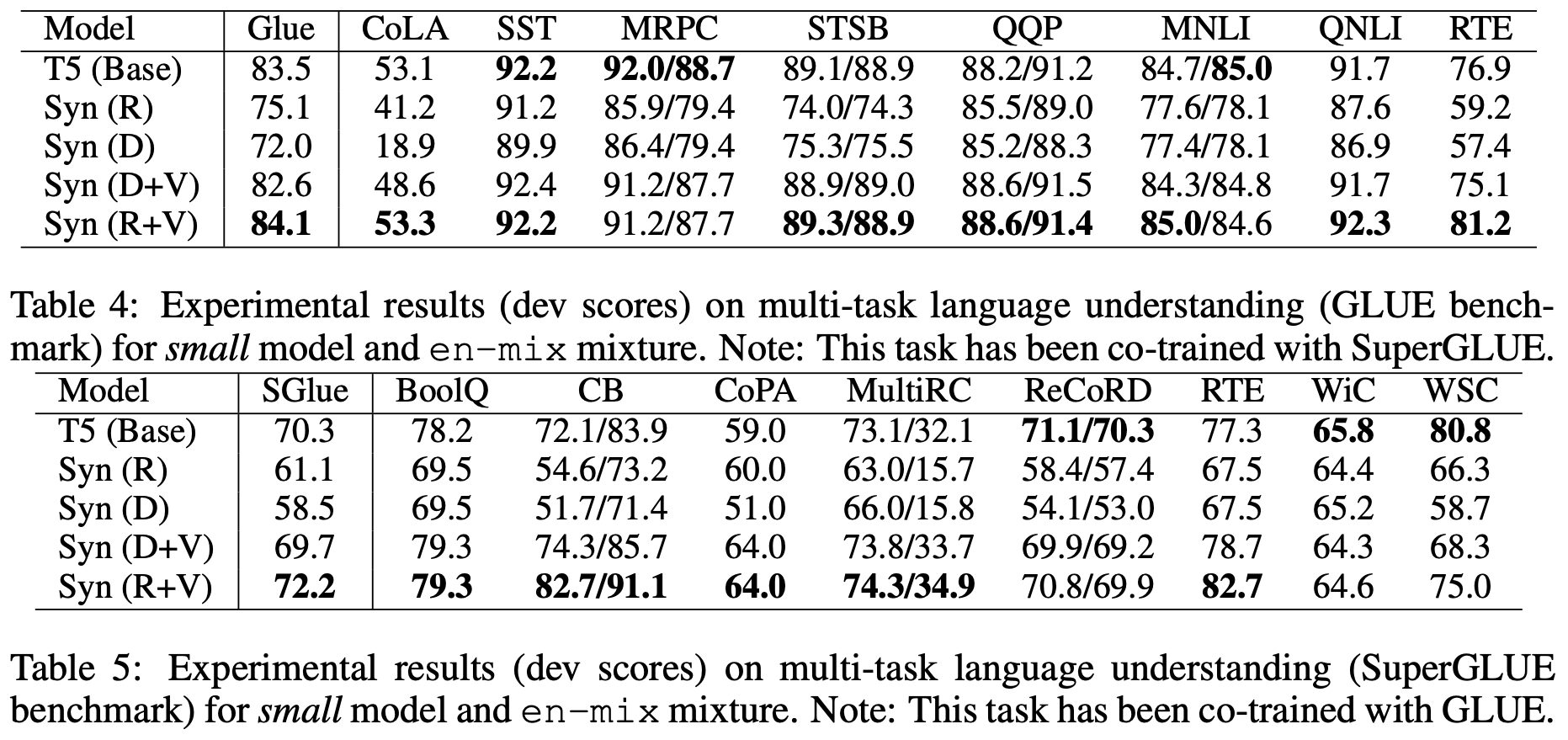 在Random的情况下,Attention矩阵不再是随样本变化的了,也就是所有样本公用同一个Attention矩阵,但是它依然能取得不错的效果,这在当时确实对大家对Attention的固有理解造成了强烈冲击。Synthesizer的实验相当丰富,包括“机器翻译”、“自动摘要”、“对话生成”、“预训练+微调”等,可以说,上面列罗的多数论文,实验都没有Synthesizer丰富。
