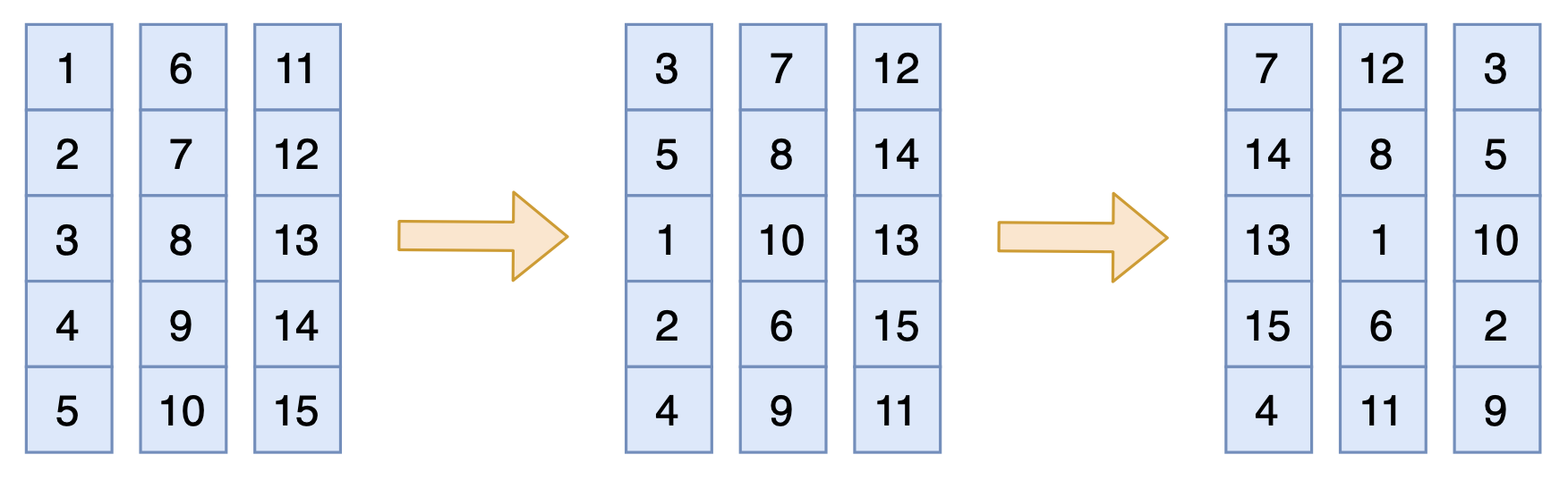 说白了,就是先竖着打乱一遍,然后横着打乱一遍,就能得到一个充分打乱的结果,接近全局打乱,如下图: