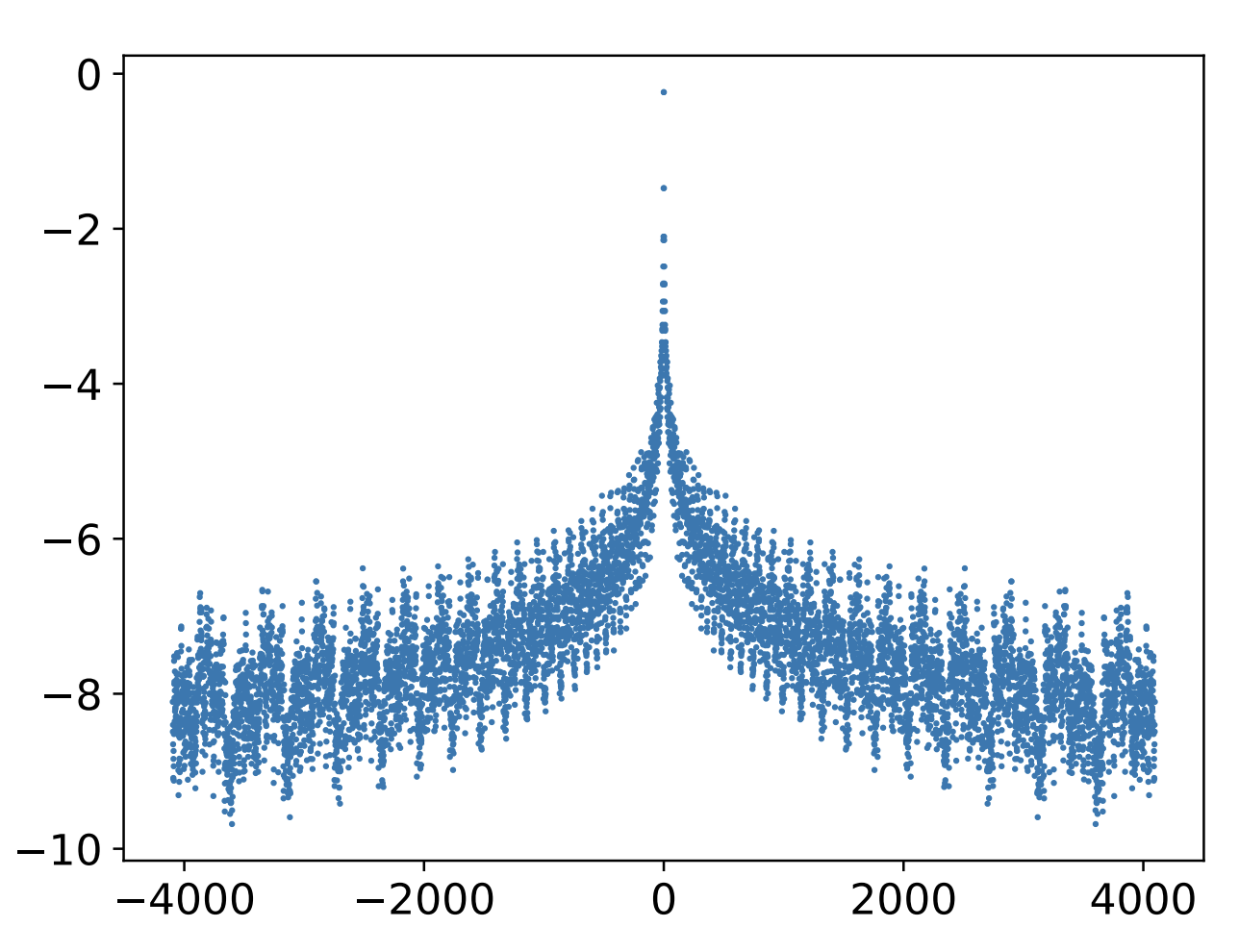 其中$\boldsymbol{p}_m,\boldsymbol{p}_n$是Sinusoidal位置编码,$\lambda > 0$是超参数。从《Transformer升级之路:1、Sinusoidal位置编码追根溯源》我们知道,$\boldsymbol{p}_m^{\top}\boldsymbol{p}_n$是$m-n$的标量函数,并且平均而言是$|m-n|$的单调递增函数,所以它的作用也跟$-\lambda|m-n|$相似。之所以强调“平均而言”,是因为$\boldsymbol{p}_m^{\top}\boldsymbol{p}_n$整体并非严格的单调,而是振荡下降,如图所示: