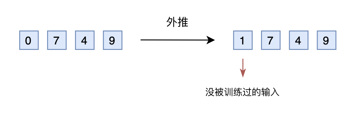 如果还是用10进制表示的向量输入到模型,那么此时的输入就是一个四维向量了。然而,原本的模型是针对三维向量设计和训练的,所以新增一个维度后,模型就无法处理了。可能有读者想说,为什么不能提前预留好足够多的维度呢?没错,是可以提前预留多几维,训练阶段设为0,推理阶段直接改为其他数字,这就是外推(Extrapolation)。