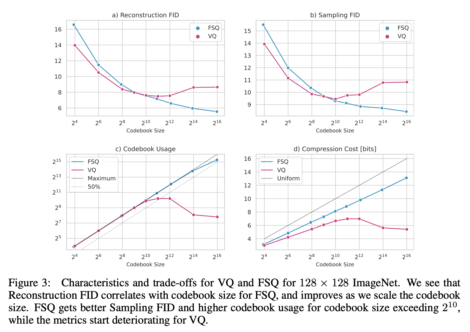 有人使用VQGAN的训练方法对比过VQ和FSQ吗?这应该是FSQ论文的实现方式。我训练出来无论codebook size为1024或是16384,FSQ在FID上都有略微的劣势。