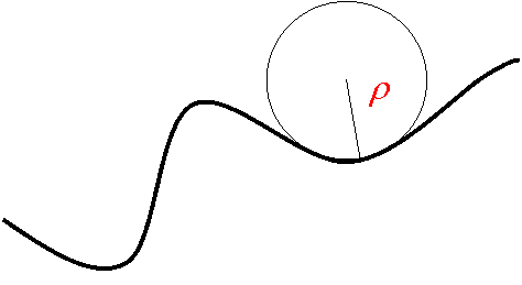 | 一个任意的平面曲线运动,可以视为由一系列小段圆周运动所组成。 | |