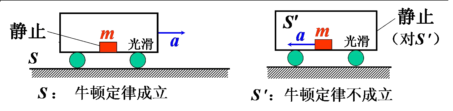 一个加速运动的参考系不是惯性系,称为非惯性系。在非惯性系中,牛顿定律不成立。但是, |