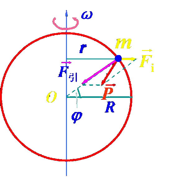 例1:求地球上纬度为处质量为m的物体的重量。 |