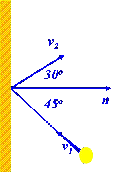 它们与板面法线的夹角分别为45度和30度,求:(1)乒乓球得到的冲量;(2)若撞击时间为0.01s,求板施于球的平均冲力 |
