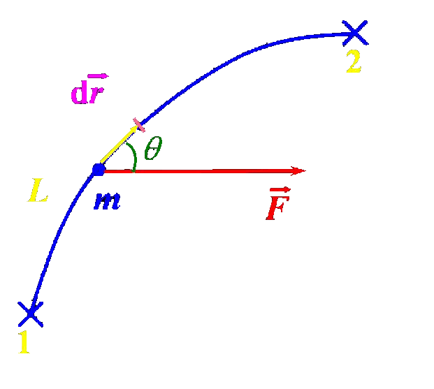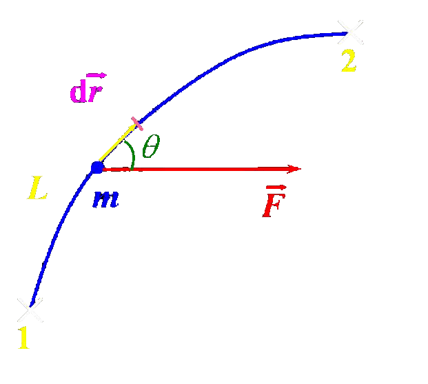如果质点沿路径L从1到2,则力对质点做功为: |
