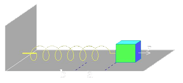 | 例2:水平放置的弹簧,一端固定,另一端系一物体。弹簧的劲度系数为k,求物体从a到b所作的功。 | |