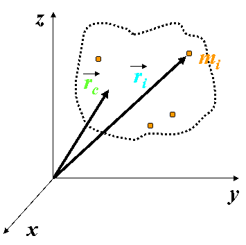 定义质心 C 的位矢为: (m为总质量) |