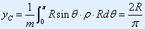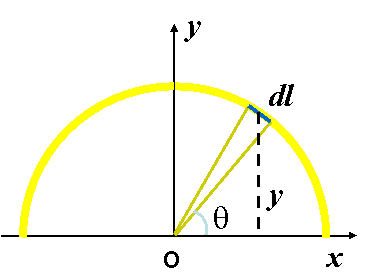 | 例1:求半圆形铁丝的质心。已知半径为R。 |