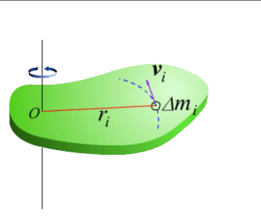 刚体定轴转动时,其上的任意一个质元均有r⊥v。因此,其角动量为: |