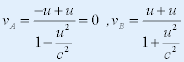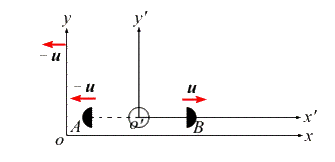 | 设一粒子在S'中静止,后分裂为相同的两块 A、B,分别沿+X'和-X'方向运动。 |