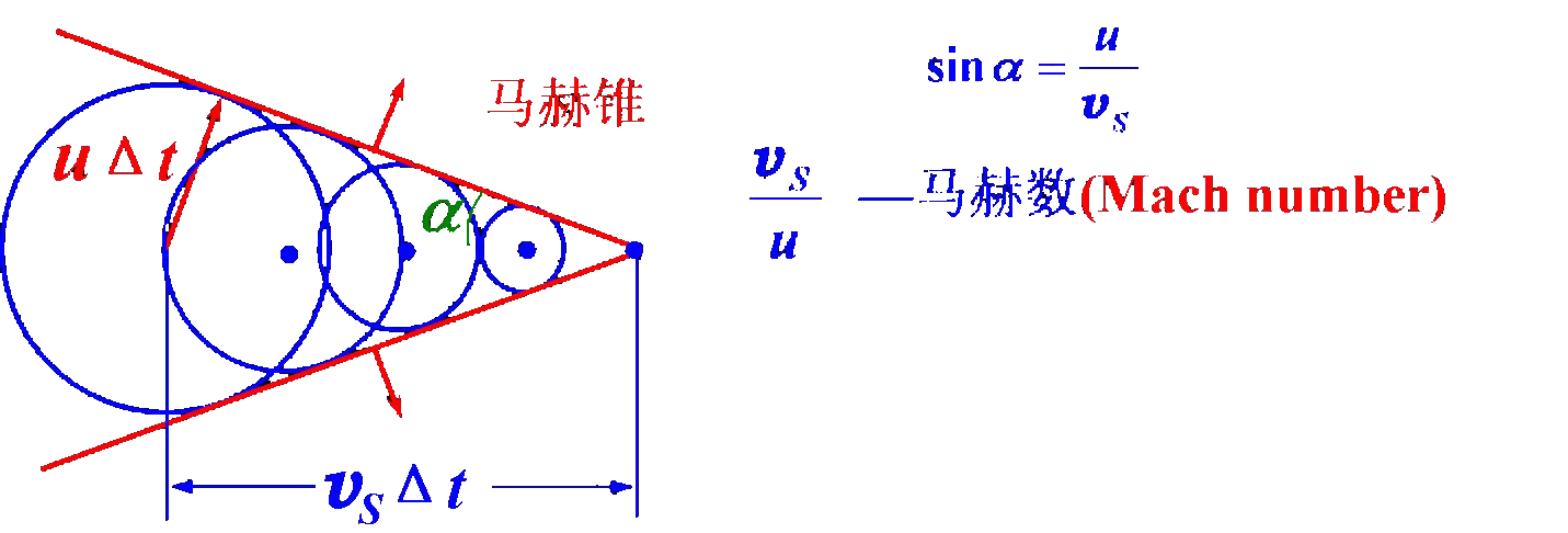 | 当波源的速度超过波的速度时,波源前方不可能有任何波动产生。形成锥形波阵面——冲击波 |