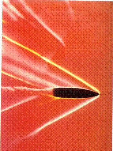 超音速的子弹在空气中形成的激波(马赫数为2 ) |