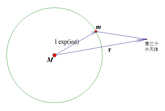 寒假一个很大的目标就是能够在三体问题的周期轨道上有点突破,于是就出动了“向量”、“复分析”、“微分方程”等理论“核武”,遗憾的是,“有心栽花花不开”,到今天还是没有多少进展。不过俗语也说“无心插柳柳成荫”,也不错。今天回看《天体力学引论》中的“圆形限制性三体问题”,经过一番思考,利用这些天的思考方法重新推导出了其运动方程和能量积分,也算是“意外收获”在此作为春节礼物与大家分享。