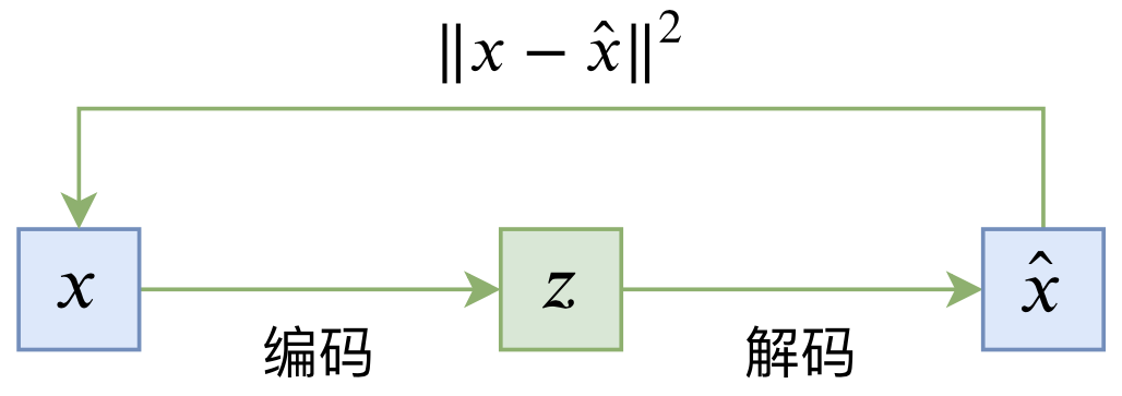 普通的自编码器是一个“编码-解码”的重构过程,如下图所示: