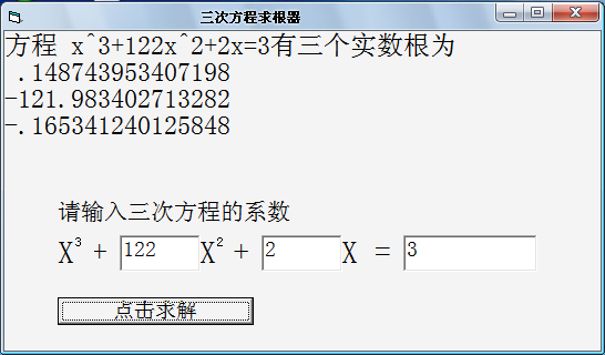 三次方程求根器(VB程序+源码,“低手”拙作)