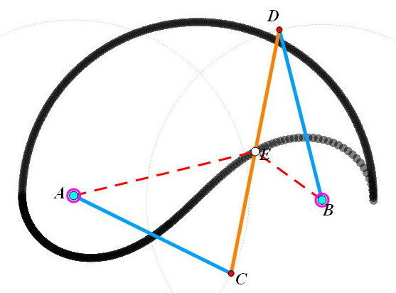 结构: 1、A、B为两定点,可看作有刚性杆连接; 2、AC为动力杆,绕点A转动; 3、BD为从动杆,CD为连杆。
