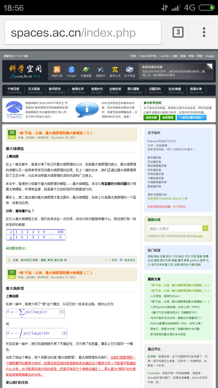 By 苏剑林 | 2015-12-24 | 21657位读者 | 引用由于Li xiaobo读者再次反映了本站的公式在移动端的支持不佳问题,笔者对网站的公式显示做了一些修改。如果读者是用电脑浏览的话,那应该感觉不到网站的变化,但是如果是手机端浏览的话,那么应该会发现,原来是由MathJax解析的公式,变成了图片形式的公式。