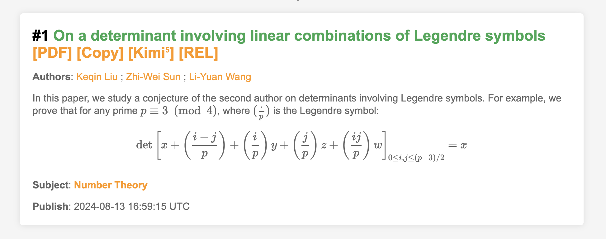 By 苏剑林 | 2024-08-15 | 30193位读者 | 引用很早之前,就有读者提出希望把Cool Papers上面的数学公式渲染一下,因为很多偏数学的论文,它们的摘要甚至标题上都带有LaTeX代码写的数学公式,如果不把这些公式渲染出来,那么看上去就像是一堆乱码,确实会比较影响阅读体验。然而,之前的测试显示,负责渲染公式的MathJax跟谷歌翻译和延时加载都不大兼容,所以尽管需求存在已久,但笔者一直没有把它加上去。